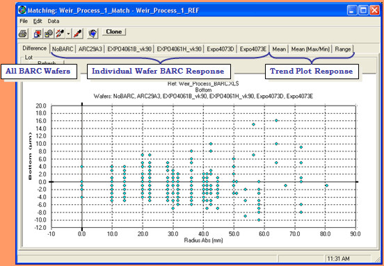 There is one tab set up for each wafer, in this case BARC film,