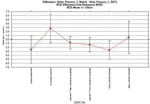 CD-SEM metrology of six BARC and one bare wafer layer, are
