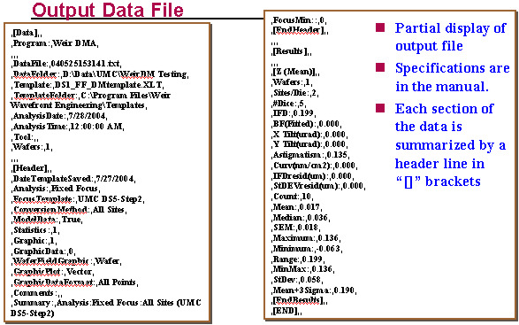 metrology recipe. Weir DM will use this data workbook as a template for the Weir